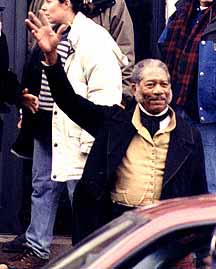 March 5, 1997 -- Steven Spielberg started filming Amistad today. Over the last month the film crew here has built and rebuilt sets; worked with history experts, moved trees; bought up loads of antiques as props; conducted local casting calls for people, horses, pigs, chickens, and goats; and spread tons of specially processed dirt on the roadways and sidewalks of the main square of our city. Today, they started filming this story of a true account of an 1839 slave rebellion aboard a Spanish slave ship and the ensuing court trial held in New Haven, CT. Newport was ideal as a substitute New Haven site because of Newport's historical building inventory. Anthony Hopkins, Morgan Freeman, Matthew McConaughey and Nigel Hawthorne are the stars.