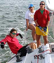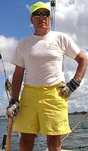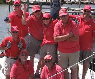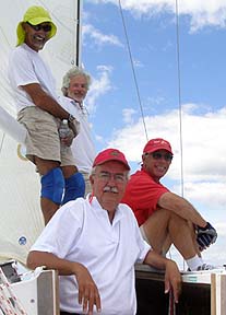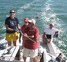 Vic pretty much roped to the Vee Jay's foredeck as we raced against four other