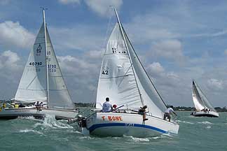 and a Soverel 33 screwing up the light wind for Vee Jay and T-Bone off to the